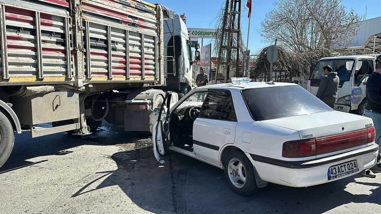 Uşak'ta otomobil ile tırın çarpışması sonucu, otomobil sürücüsü yaralandı.