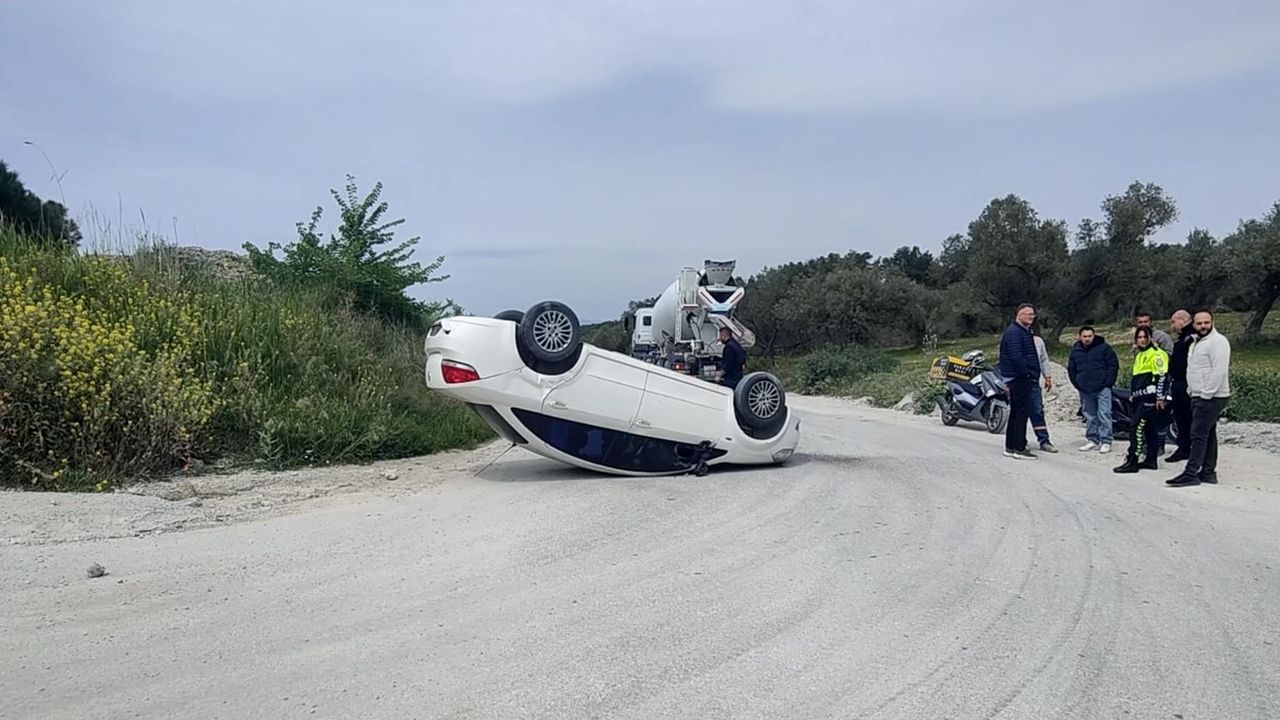 Kaza, Kuşadası ilçesi Değirmendere Mahallesi Göcek Kavağı Yolu üzerinde meydana geldi. Edinilen bilgiye göre 09 AAJ 974 plakalı otomobilin sürücüsü S.M.(80), seyir halindeyken iddiaya göre şantiyeden aniden yola çıkan beton mikserine çarpmamak için ani manevra yaptı. Bu sırada yol kenarında bulunan büyük bir taşa çarpan otomobil takla atarak ters döndü. Araçtan kendi imkanlarıyla çıkan sürücünün kazayı hafif yaralı olarak atlattığı öğrenildi. İhbar üzerine olay yerine sağlık ve polis ekipleri sevk edildi. Kontrol amaçlı Kuşadası Devlet Hastanesi'ne kaldırılan sürücünün sağlık durumunun iyi olduğu bildirildi. Polis ekipleri kazayla ilgili soruşturma başlattı.
