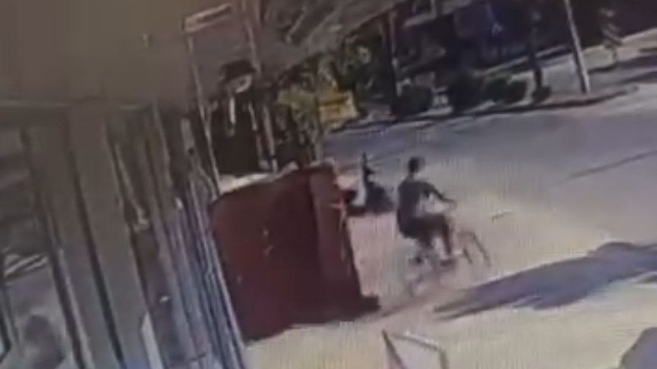 Şüphelinin bisikleti sürerek olay yerinden ayrılması anbean görüntülendi.