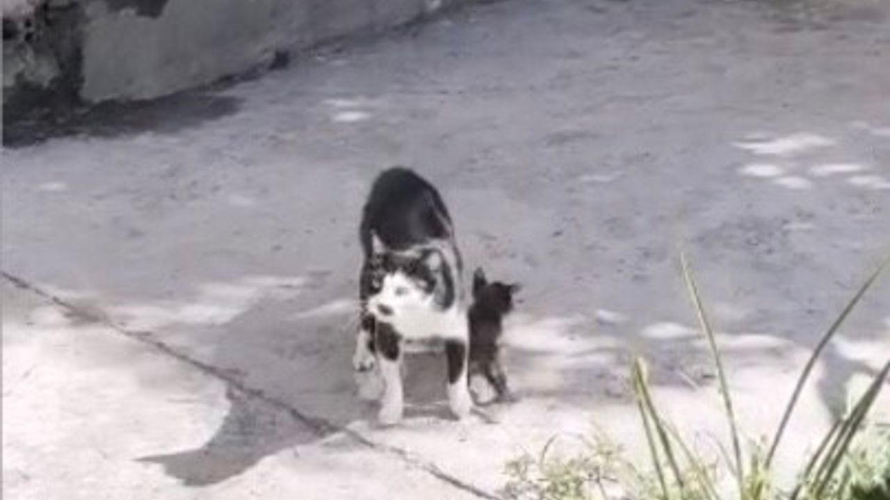Anne kedinin yavrusuna kavuştuğu anlar duygusal görüntülere sahne olurken, mahalle sakinleri itfaiye ekiplerine duyarlılıklarından dolayı teşekkür etti.