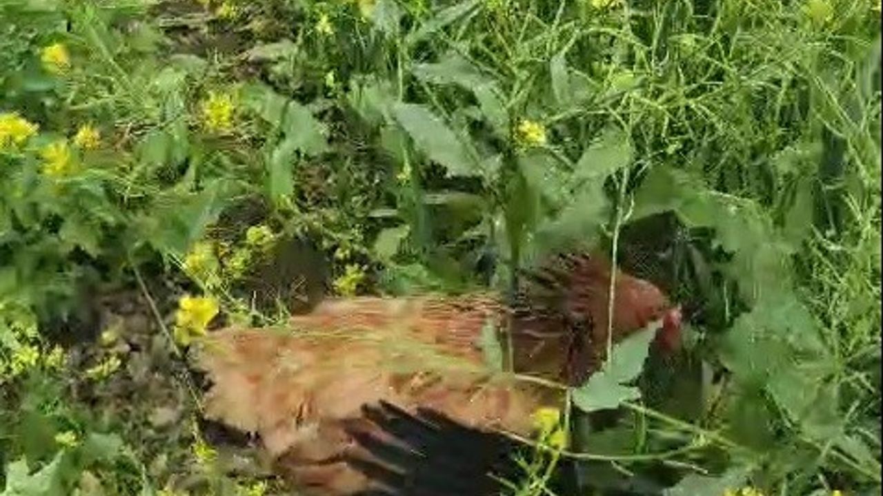 Yaralandığı için bir süre yerde hareketsiz kalan kargayı eliyle dürten vatandaş, karganın uçmasını sağladı. Bir anda canlanan karga, uçarak tarladan uzaklaştı. Tavuk ise, korkudan otların altına saklanan yavrularını etrafına toplayarak, başlarında bekledi.