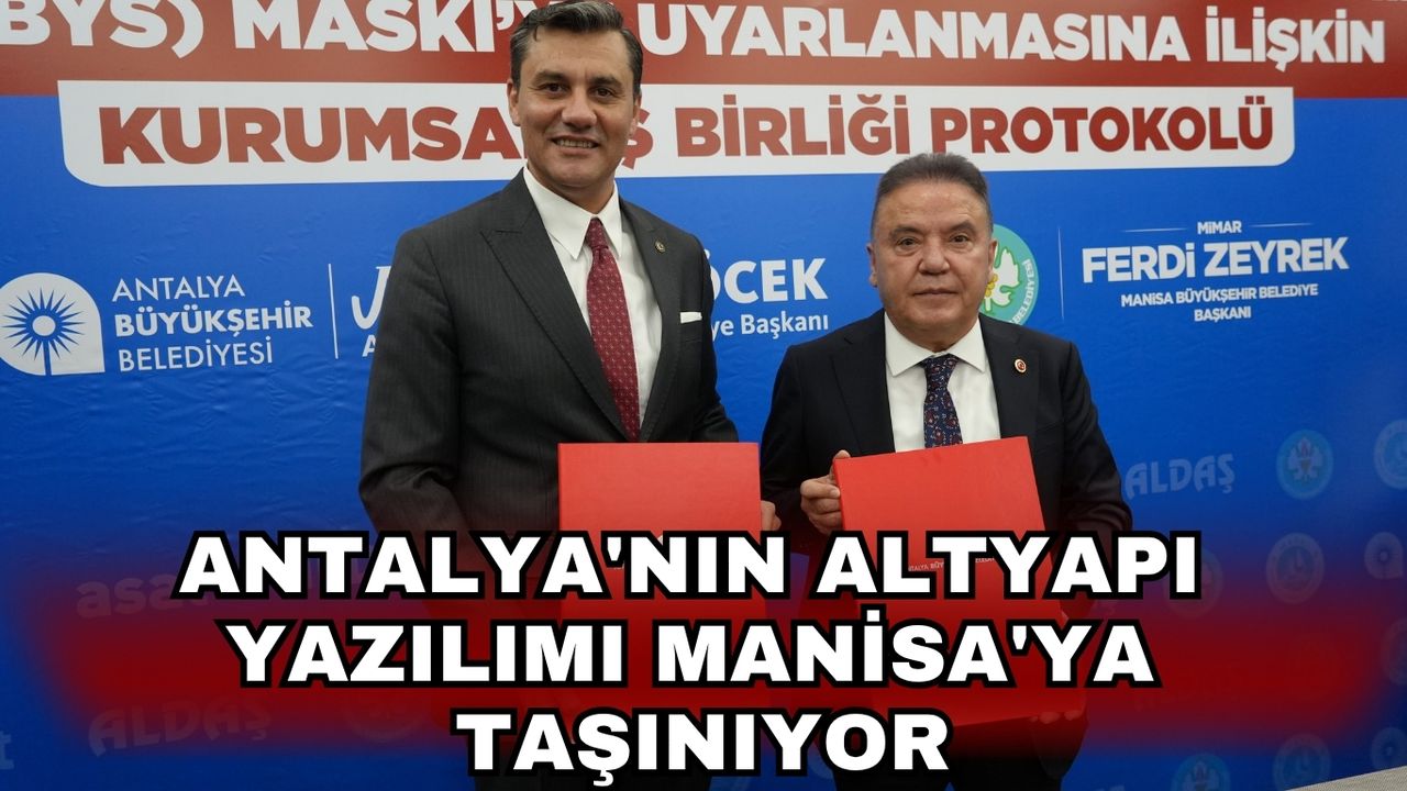 Antalya Büyükşehir Belediyesi ASAT Genel Müdürlüğü ALDAŞ Teknoloji Ofisi tarafından geliştirilen "Altyapı Bilgi Yönetim Sistemi", Manisa Büyükşehir Belediyesi'nde kullanılmaya başlanıyor. Antalya Büyükşehir Belediye Başkanı Muhittin Böcek ile Manisa Büyükşehir Belediye Başkanı Ferdi Zeyrek'in imzaladığı işbirliği protokolüyle, Antalya'da başarıyla uygulanan yerli ve milli sistem Manisa'nın altyapı süreçlerine entegre edilecek.