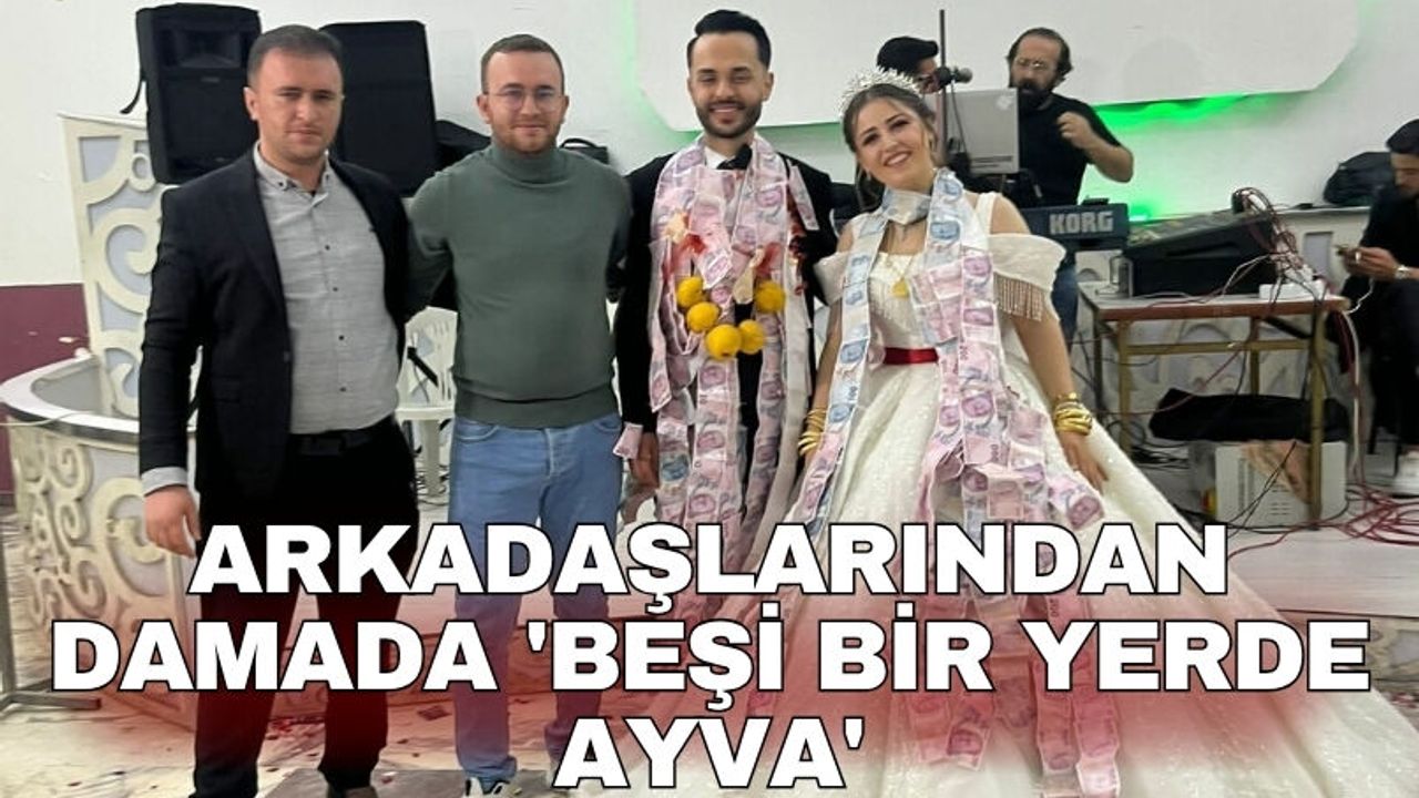 Düğünde damada takılan "beşi bir yerde ayva" ise geceye damga vururken, davetliler uzun süre bu esprili takı merasimini konuştu.