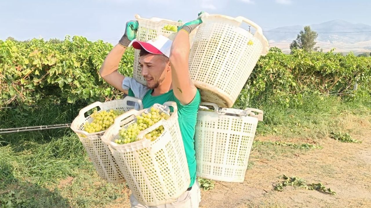 Manisa’nın Sarıgöl Ovası’nda üzüm hasadı tüm hızıyla sürüyor. Bağlardan kesilen üzümler kasalara doldurularak kamyonlara taşınırken, kadın işçilerin "Haydi üzüm kalmadı" diye seslenmesi üzerine genç işçiler içleri üzüm doku seleleri sırtlayarak adeta yarış edercesine kamyonların yanına koşuyor.
