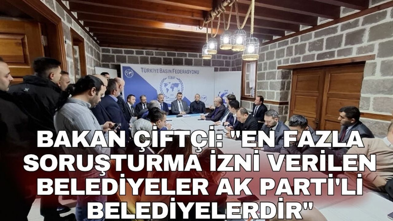 Belediyelere yönelik soruşturmalarda muhalefet partilerine yönelik hareket edildiği iddialarını da değerlendiren Çiftçi, "31 Mart 2024 seçimlerinden sonra İçişleri Bakanlığımızın ilgili birimlerince ihbar, şikayet ve özel teftişler kapsamında 3 bin 224 inceleme yürütülmüştür. Bunların bin 298'i hakkında soruşturma izni verilmiştir. Bunlardan 591'i AK Parti'li belediyeler. CHP'li 321, MHP'li 102, İYİ Parti'li 6, DEM'li 18 ve diğer partilerden 260 belediyeye yönelik soruşturma izni verilmiştir. Bu veriye göre, en fazla soruşturma izni verilen belediyeler AK Parti'li belediyelerdir. Yaklaşık yüzde 46'sına tekabül etmektedir" açıklamasında bulundu.