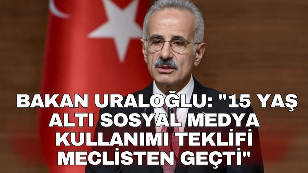Bakan Uraloğlu, 15 yaş altı sosyal medya düzenlemesine ilişkin kanun teklifinin Meclisten geçtiğini belirterek, "Aile ve Sosyal Hizmetler Bakanlığımız başta olmak üzere ve diğer bakanlıklarımızın da katkısıyla beraber 15 yaş altı sosyal medya kullanımı düzenlemesine dair kanun teklifi Meclisten geçti. Süreci takip ederek, çocuklarımızı koruma refleksimizi en üst seviyede gündemde tutacağız ve hayata geçireceğiz" diye konuştu.