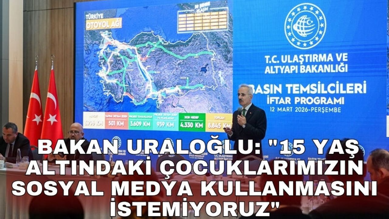Ulaştırma ve Altyapı Bakanı Abdulkadir Uraloğlu, basın mensuplarıyla iftarda bir araya geldi. 15 yaş altındaki çocukların sosyal medya platformlarını kullanmasına ilişkin düzenlemeyi Aile ve Sosyal Hizmetler Bakanlığı ile TBMM Başkanlığına sunduklarını bildiren Uraloğlu, sosyal medya platformlarının bağımlılık, psikolojik sorunlar, şiddet eğilimi, aile içi çatışma, sosyal ilişkilerde olumsuzluk ve çocukların zaman israfı gibi birçok probleme yol açabildiğini dile getirdi.