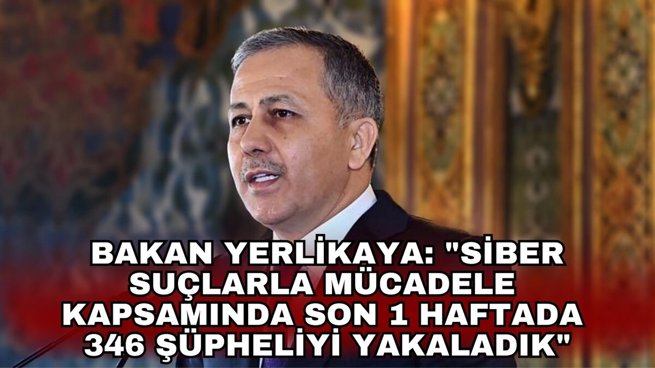 İçişleri Bakanı Yerlikaya sosyal medya hesabından yaptığı açıklamada, siber suçlarla mücadele kapsamında son 1 haftada 346 şüpheliyi yakaladıklarını belirterek 21 il merkezli "Çevrim içi Çocuk Müstehcenliği ve Tacizi, Nitelikli Dolandırıcılık, Yasa Dışı Bahis, Nitelikli Hırsızlık" suçlarına yönelik düzenlenen operasyonlarda; 99 şüpheli şahsın tutuklandığı kaydetti. Bakan Yerlikaya, şüphelilerden 60’ı hakkında adli kontrol kararı verildiğini açıklayarak diğerlerinin işlemlerinin devam ettiğini vurguladı.