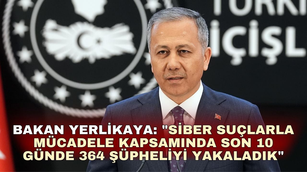 "Siber Suçlarla Mücadele kapsamında son 10 günde 364 şüpheliyi yakaladık. 23 il merkezli ‘Nitelikli Dolandırıcılık, Yasa Dışı Bahis, Çevrim İçi Çocuk Müstehcenliği ve Tacizi’ suçlarına yönelik düzenlenen operasyonlarımızda; 125 şüpheli şahıs tutuklandı. 94’ü hakkında adli kontrol hükümleri uygulandı. Diğerlerinin işlemleri devam ediyor. Şüphelilerin; ‘Sigorta hizmeti, kiralık bungalov, hediye çeki ve yatırım danışmanlığı’ temalarını kullanarak vatandaşlarımızı dolandırdıkları, Yasa dışı bahis ve kumar sitelerinin reklamını yaptıkları, Yasa dışı bahis ve kumar oynattıkları, yasa dışı para nakline aracılık ettikleri, Müstehcen çocuk görüntüsü barındırdıkları, vatandaşlarımızın mobil bankacılık hesaplarına erişim sağlayarak, haksız kazanç elde ettikleri tespit edildi. Ankara, Antalya, Ardahan, Balıkesir, Çanakkale, Çorum, Diyarbakır, Gaziantep, Gümüşhane, Hatay, İstanbul, Karabük, Kayseri, Kırıkkale, Kırşehir, Kocaeli, Mersin, Niğde, Ordu, Osmaniye, Sakarya, Sivas ve Van merkezli gerçekleştirilen operasyonlarda yakalanan şüphelilerin Savcılıklarımızca haklarında soruşturma başlatıldı."