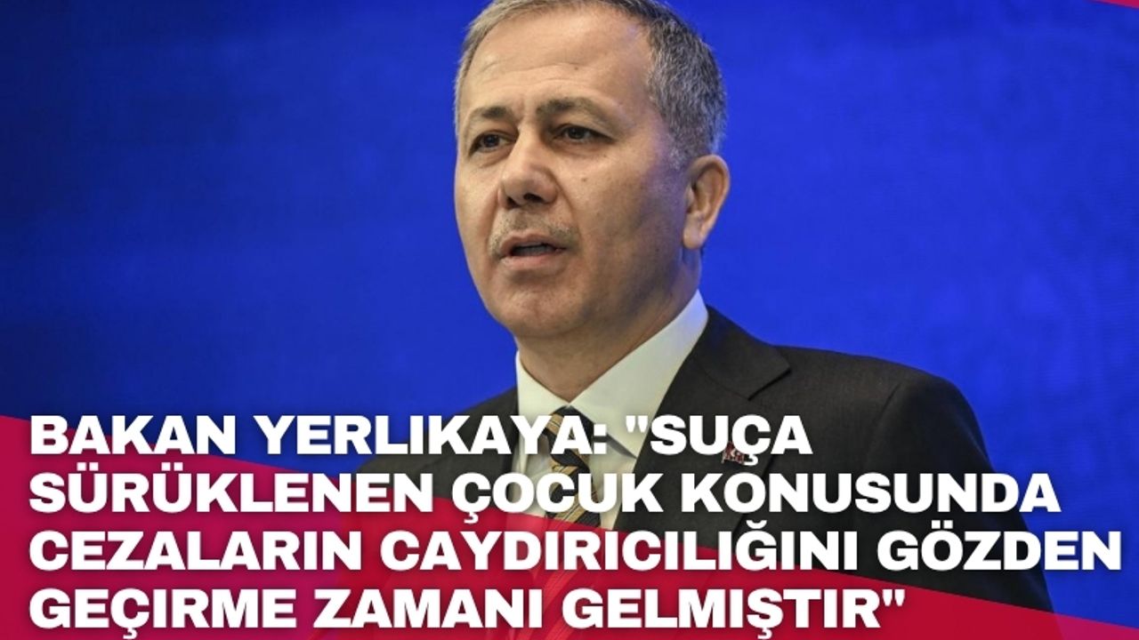 Suça sürüklenen çocuk konusuyla ilgili de konuşan Bakan Yerlikaya, "Bu konuda cezaların caydırıcılığını yeniden ele alma zamanı gelmiştir. 2020'de kasten öldürme suçlarının yüzde 12,6'sı, suça sürüklenen çocuklar tarafından işlendi. 2024'te bu oran yüzde 11,4 oldu. Bizde 12 yaş ve altına ceza verilemiyor. Ancak 15 yaş ve üzeri için nasıl bir düzenleme yapılacağını konuşmamız gerekiyor" ifadelerine yer verdi.
