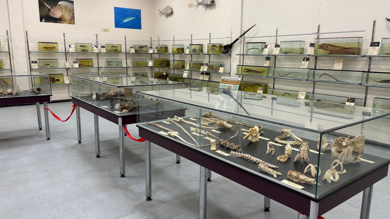 Deniz Canlıları Koleksiyon Merkezi’nin İzmir Katip Çelebi Üniversitesi bünyesinde proje neticesinde kurulduğunu aktaran Su Ürünleri Fakültesi Dr. Öğr. Üyesi Erhan Irmak, "İçerideki malzemelerin oluşturulması ve toplanması ise çocukluk dönemime, yaklaşık 35-40 yıl öncesine uzanan bir süreç. Kumsalda dalarak kabuk ve deniz kabukları toplamakla başlayan bu ilgi, amatör balık avcılığı sayesinde daha da arttı. Üniversiteye girişle birlikte bilgi birikimi devam etti; ardından bilimsel ekspedisyonlar gerçekleştirildi, örneklemeler yapıldı, balık hallerine gidildi ve balıkçılarla kurulan iletişim sayesinde müzemiz bugünkü haline ulaştı. Müzemizde denizlerde yer alan memelilerden omurgasızlara kadar pek çok canlı grubu bulunmakta. Ağırlığı kemikli ve kıkırdaklı balıklar oluşturmakta. Bunun yanı sıra midye, salyangoz, yengeç, karides ve kafadan bacaklılar gibi omurgasız türleri de koleksiyonumuzda yer almakta. Hamsi ve sardalya gibi herkesin bildiği ticari türlerin yanı sıra lüfer ve levrek gibi türler ile adını bile bilmediğimiz pek çok balık da burada sergilenmekte. Özellikle bazı köpek balığı türleri ile mersin balıkları gibi nesli tehdit altında olan türlerin sayısı oldukça azalmış. Akdeniz gibi balıkçılığın yoğun olduğu bir bölgede bile artık nadiren rastlanan beyaz köpek balığının müzemizde bulunan örneği yaklaşık 20 yıllık. Omurgasız türlerinde de artık göremediğimiz canlılar mevcut" dedi.