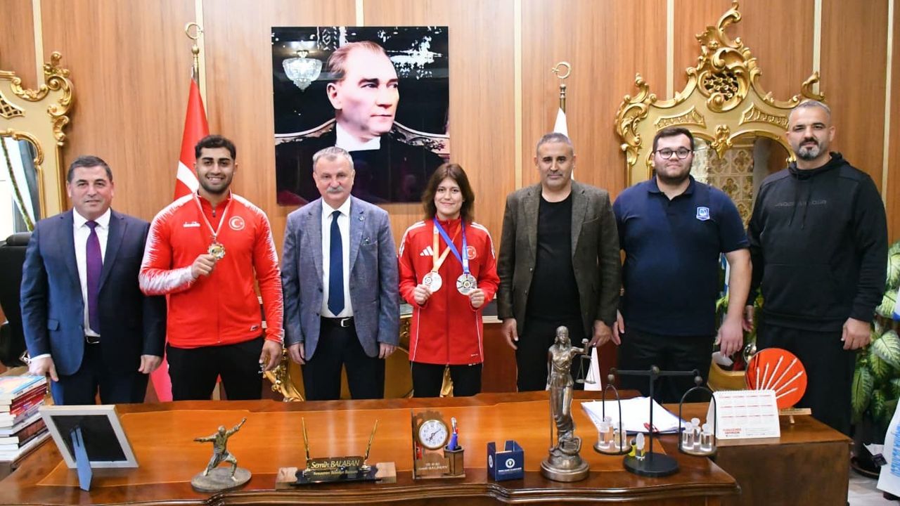 Yunusemre Belediye Başkanı Semih Balaban, uluslararası arenada önemli dereceler elde eden Yunusemre Belediyespor'un milli judocuları Sura Nil Karasu ve Enes Pınar'ı makamında ağırladı. Ziyarette Belediye Başkan Yardımcısı Haydar İzci, Kulüp Başkanı Bülent Kanik, antrenörler İsmail Canıtez ve Halil Öğer de yer aldı. Makedonya'da düzenlenen Gençler Avrupa Judo Kupası'nda 52 kiloda ikinci, Slovakya'da düzenlenen Avrupa Şampiyonası'nda ise takımlarda ikincilik elde eden Sura Nil Karasu ile Kosova'da yapılan Büyükler Balkan Şampiyonası'nda 90 kiloda üçüncü olan Enes Pınar, başarılarını Başkan Balaban'la paylaştı. Milli sporcuları tebrik eden Yunusemre Belediye Başkanı Semih Balaban, gençlerin Türkiye'yi uluslararası platformlarda temsil etmesinin büyük bir onur olduğunu ifade etti. Başkan Balaban, "Sura Nil ve Enes gibi azimli, disiplinli sporcularımızın başarıları şehrimize ve ülkemize moral kaynağı olmuştur. Onlarla gurur duyuyoruz. Yunusemre Belediyesi olarak altyapıya yatırım yapmaya devam edeceğiz. Amacımız; pırıl pırıl gençlerimizle Türk sporuna en iyi şekilde hizmet etmektir" dedi. Kulüp Başkanı Bülent Kanik ise sporcuların elde ettiği başarıların belediyenin spora verdiği desteğin bir yansıması olduğunu belirterek, "Belediye Başkanımız Semih Balaban'ın desteğiyle Yunusemre Belediyespor olarak her branşta iddialı hale geldik. Milli takım forması giyen sporcularımızın sayısı giderek artıyor. Gün geçtikçe daha iyi olacağız" diye konuştu.