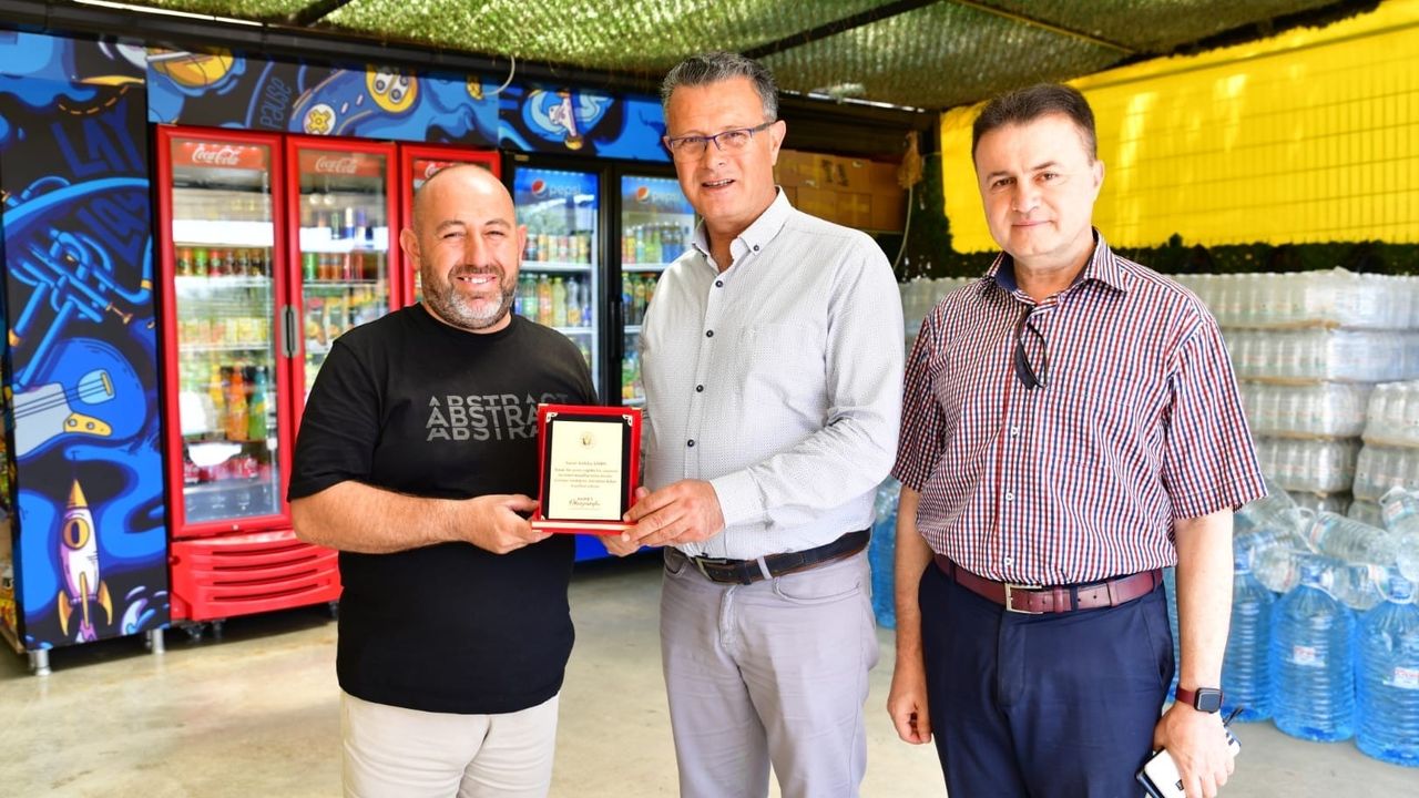 Çevreci bakkala Başkan Öküzcüoğlu'ndan plaket