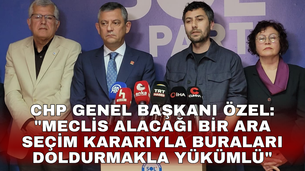 Görüşme sonrası ara seçimin bir ihtiyaç olduğunu aktaran Özel, "Hatay, sonra Afyonkarahisar, ardından Kırıkkale, ardından Kastamonu, Adıyaman, Kocaeli ve İstanbul birinci bölge. Buradaki seçmenlerin seçtiği milletvekilleri boşaldı, üstünden de 30 aydan fazla süre geçti. Meclis alacağı bir ara seçim kararıyla buraları doldurmakla yükümlü, anayasa bunu tartışmasız şekilde yazmış. Zaten buna itiraz eden kimse de yok. Bu seçim bölgelerin son seçiminde AK Parti birinci parti. Yani 2023'teki bu milletin size yetki verdiği seçimdeki gücünü koruyorsanız, 8 tane milletvekilliği var önünüzde. Neden yapmıyorsunuz ara seçimi? Ara seçimi yapıp 7-8 milletvekilini katın" diye konuştu.