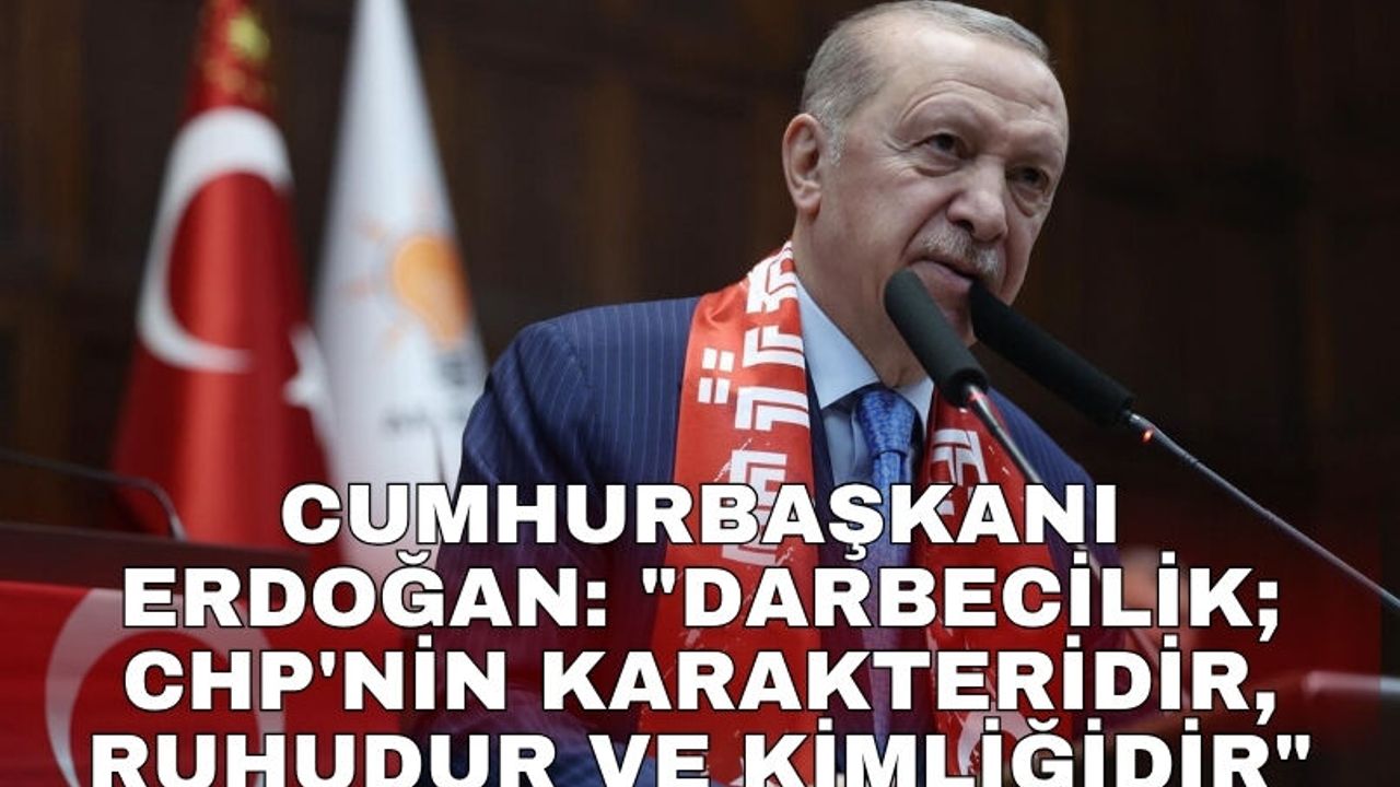 Türk siyasi tarihine bakıldığında darbecilerle beraber kol kola yürüyenin CHP olduğunu dile getiren Erdoğan, "Orada puslu havalarda darbecilere mihmandarlık yapan CHP'yle karşılaşırsınız. Orada üniversite öğrencilerinin kıyma makinelerinden geçirildiği yalanıyla darbeye ortam hazırlayan CHP'yi bulursunuz. Ülkemizde darbe geleneğini başlatan 27 Mayıs'ın baş aktörü CHP'yi görürsünüz. 12 Mart Muhtırasının arkasında CHP'nin silüeti vardır. 12 Eylül darbecilerinin ilham kaynağı aynı şekilde CHP ideolojisidir. 28 Şubat'ın müsebbibi en az devrin vesayetçileri kadar CHP zihniyetidir. 3 Kasım 2002'den beri Türkiye demokrasisini hedef alan provokasyonların tamamında CHP'nin parmak izi vardır. 27 Nisan Bildirisi öncesinde toplumu ve siyaseti geren CHP'dir. Gezi olaylarında, sokak darbesine yeltenenlerin sırtını sıvazlayan CHP'dir. 17-25 Aralık darbe teşebbüsünde darbecilere çanak tutan CHP'dir. 15 Temmuz ihanetine ‘kontrollü darbe iftirası' atarak darbecileri aklamaya çalışan yine CHP'dir. Kimse kusura bakmasın ama Türkiye'nin siyasi terimler sözlüğünde darbeci ve cuntacı sıfatının karşısında CHP yazar. Darbecilik; CHP'nin karakteridir, ruhudur ve kimliğidir" diye konuştu.