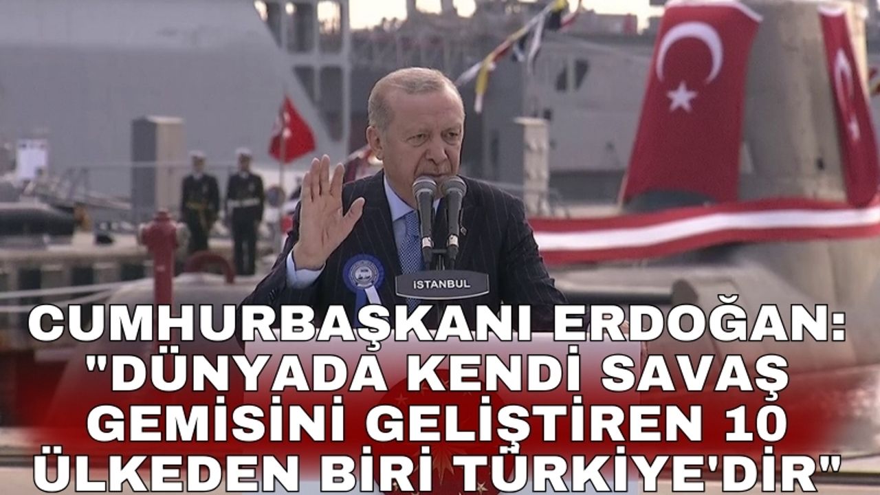 Türkiye'nin mevcut teknolojilerini her gün daha da ileriye taşıdığına dikkat çeken Cumhurbaşkanı Erdoğan, "Kendimize inandık, Türk savunma sanayine güvendik ve elbette burada durmayacağız. 2028 yılı için 11 milyar dolarlık ihracat rakamıyla savunma ve havacılık ihracatında ilk 10'a gitmektir. Bu hedefe doğru sağlam adımlarla ilerliyoruz. Dünyada kendi savaş gemisini geliştirip denize indiren 10 ülkeden biri Türkiye'dir. Sahadan aldığımız verileri titizlikle analiz ediyor ve mevcut teknolojilerimizi her gün daha da ileriye taşıyoruz. Başkanı olduğum Savunma Sanayi İcra Komitesi'nde aldığımız kararlar doğrultusunda, projelerimizin meyvelerini birer birer topluyoruz. Ana muhalefetin balıklar rahatsız oluyor diyerek eleştirdiği kızıl elmamız görüş ötesi bir hava füzesiyle vurarak etkisiz hale getirdik. TCG - Anadolu'nun abisi olacak uçak gemimizin inşa süreçlerini de başlattık. İnsansız hava araçlarından firkateyne kadar hem kendi ihtiyaçlarımızı hem de dost ve müttefiklerimizin ihtiyaçlarımızı karşılıyoruz" dedi.