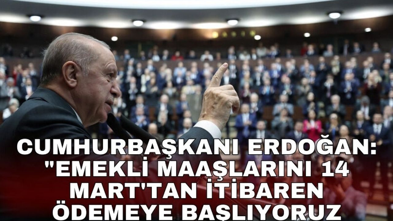 Cumhurbaşkanı Erdoğan, emeklilerin bayram ikramiyelerini her yıl olduğu gibi yine bayram öncesinde hesaplara yatıracaklarını belirterek, "Ayrıca emeklilerimizin bu ayki emekli maaş ödemelerini de öne çekerek 14 Mart'tan itibaren ödemeye başlıyoruz" ifadelerine yer verdi.