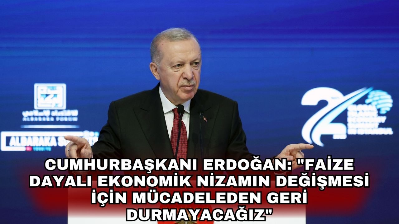 Yarım asra yaklaşan siyasi hayatı boyunca milletin takdiri ile geldiği tüm görevlerde faize dayalı ekonomik sistemle mücadele etmiş bir kardeşinizim. Gelir adaletini bozan, milyarlarca insanı bir avuç kapitalistin kölesi haline getiren çarpık sisteme daima itiraz ettim yine itiraz ediyorum. Her ne surette olursaolsun, faizi ve faize dayalı bir ekonomik sistemi meşru göremeyeceğimizi sık sık ifade ettim. Bunun yanında faizin ekonomide üretimde ticarette ve sosyal hayatta yol açtığı sorunlara dikat çektim. Rantiyenin sesi olan muhalefet bunda da hep karşımıza dikildi. Doğru olan politikalarda dahi, bu ülkenin hayrına dokunacak yerli ve milli bir duruş sergileyemediler. Oysa insanlığı faize mecbur ve mahkum bırakan küresel sisteme itiraz etmek yerilecek değil, takdir edilecek vakur bir tavırdır. Tayyip Erdoğan olarak şahsen faizsiz ekonomi özlemimi bundan sonra da gür bir seda ile dillendirmeye devam edeceğim. Tıpkı ‘Dünya 5'ten büyüktür’ itirazımızda olduğu gibi faize dayalı ekonomik nizamın değişmesi için de mücadeleden geri durmayacağız. Alternatif çözümlerin toplumda yaygınlaşması için çaba harcayacağız" dedi.
