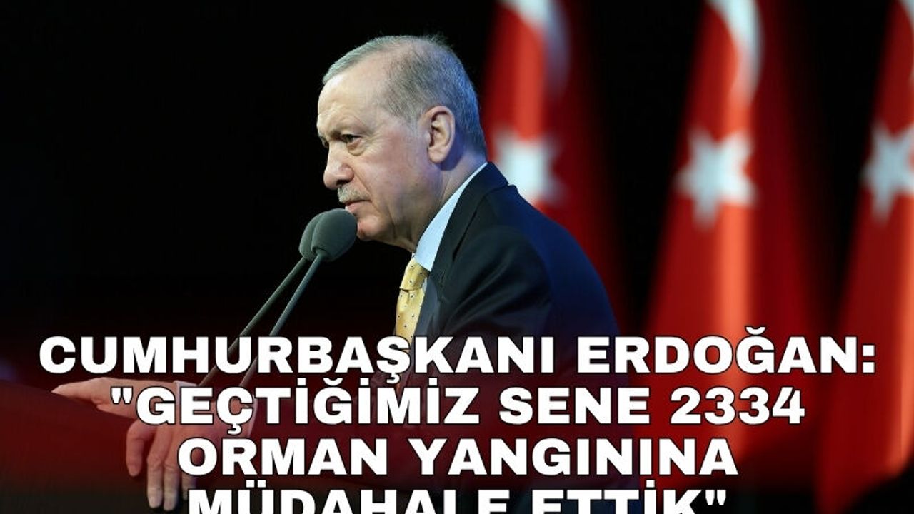 Türkiye’nin Akdeniz kuşağında yer aldığı için bu tehditlerle en sert şekilde yüzleşen ülkelerden birisi olduğunun altını çizen ve orman yangınlarına karşı alınan önlemlerden bahseden Erdoğan, "Sadece geçtiğimiz sene 2334 orman yangınına müdahale ettik. Bu yangınlardan 81 bin hektar ormanlık alanımız etkilendi. Yangınlara karşı hazırlıklarımızı en hızlı şekilde yapıyoruz. Bu yıl hava filomuza 14 yeni helikopter ekleyerek helikopter sayımızı 119’, havadan su atma kapasitemizi 462 tona çıkardık. 28 uçağımız 14 insansız hava aracımız 2766 ilk müdahale aracımız, 1953 arasözümüz ve 878 iş makinemizle bu sene yangınlarla çok daha etkin mücadele edeceğiz" dedi.
