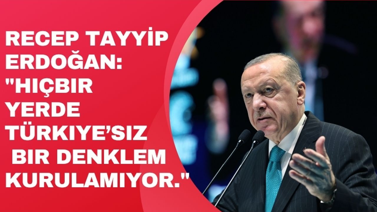 Barış, huzur ve istikrar denince akla ilk Türkiye geldiğini kaydeden Cumhurbaşkanı Erdoğan, "Türkiye dış politikası ile demokrasisi ile savunma sanayi ile ekonomisi ile içeride ve dışarıda attığı kararlı adımlarla artık küresel bir güce dönüşüyor. Bugün barış, huzur denince, istikrar denice akla ilk Türkiye geliyor. Şefkat ve merhamet denince, adalet denince zihinlerde ilk bu aziz millet canlanıyor. Sahada ve masada güçlü Türkiye gerçeğini dost düşman fark etmeksizin bugün herkes kabul ediyor. Bunu açıkça dillendirmek zorunda kalıyorlar. Suriye’den Gazze’ye, Körfez’den Rusya - Ukrayna arasındaki çatışmalara kadar hiçbir yerde Türkiye’siz bir denklem kurulamıyor. Artık hem bölgesinde hem dünyada sözüne itibar edilen çevresine huzur ve istikrar ihraç eden bir Türkiye var. Barışın, kardeşliğin, kalkınmanın ve adaletin egemen olduğu Türkiye Yüzyılı vizyonumuzu kuvveden fiile çıkarma yolunda tarihi bir eşikteyiz. AK Parti ve Cumhur ittifakı olarak bütün enerjimizi, bütün dikkatimizi bu vizyona yoğunlaştırmış durumdayız. Karşılaştığımız direnç en fazla süreyi biraz uzatır. Ama bu vizyonun tüm unsurları ile hayata geçmesini engelleyemez. Türkiye Yüzyılı'na giden yolda dönülmesi gereken kavşakların en başında yarım asırlık terör musibetinden ülkemizi kurtarmak yer alıyor. Terör musibetinden hamdolsun ülkemizi kurtardık mı? On binlerce vatan evladını şehit verdiğimiz ekonomimize 2 trilyon dolar maliyeti olan terör bataklığını inşallah 86 milyon el ele verip hep birlikte kurtarmaya devam edecek miyiz? Bu noktada samimiyiz, sabırlıyız. Soğukkanlı bir şekilde menzile yürüyoruz. Hedefe yaklaştıkça ülkemizin bu meseleyi çözmesini istemeyen odakların süreci rayından çıkarmaya yönelik operasyonlarını artıracağının elbette farkındayız. Bu tuzakların hiç birine düşmeyeceğiz. Her ne bahaneyle, her ne gerekçeyle olursa olsun aramıza nifak sokmak isteyenlere aldanmayacağız. Gayemiz, nesillerin heba olmadığı, annelerin ağlamadığı, barışın, kardeşliğin, güvenliğin, huzur ve refahın hüküm sürdüğü bir iklimin tüm bölgemizde hakim kılınmasıdır. Ortak bir iradeyle inşallah önce terörsüz Türkiye'yi, ardından da terörsüz bölgeyi en kalıcı eserimiz olarak bu ülkenin evlatlarına kazandıracağız" diye konuştu.