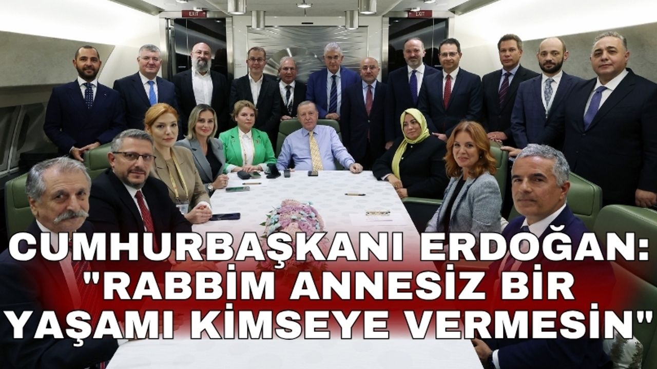 Cumhurbaşkanı Erdoğan, kendisine yöneltilen annesiyle ilgili soruya duygusal bir cevap verdi. "Allah razı olsun. Kolay değil. Rabbim annesiz bir yaşamı kimseye vermesin, onunla da imtihan etmesin" diyen Erdoğan, annesinin vefatının üzerinden geçen yıllara rağmen acısının ilk günkü tazeliğini koruduğunu dile getirdi. Erdoğan, "Bu kadar süre geçti ama bütünüyle ilk andan itibaren buraya gelene kadar annesiz yaşam çekilir gibi değil. Rabbim cennetiyle, cemaliyle annelerimizle beraber bizleri haşru cem eylesin" ifadelerini kullandı.