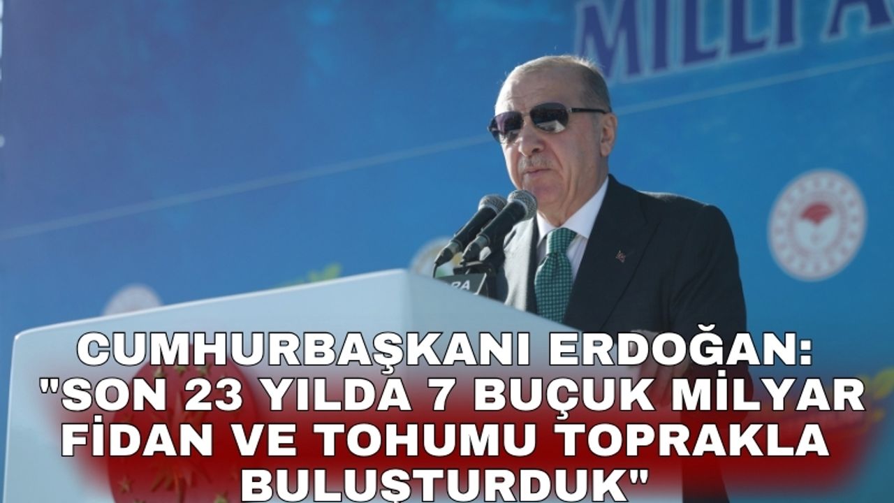 Cumhurbaşkanı Erdoğan ağaçların doğa için önemine önemine değinerek, "Her zaman söylüyorum; biz "Yarın kıyametin kopacağını bilseniz bile elinizdeki fidanı dikin" buyuran bir inancın mensuplarıyız. Çevre kirliliği ve iklim değişikliğinin hepimizin hayatını doğrudan etkilediği bir süreçte tabiatın korunmasına daha fazla önem vermemiz gerekiyor. Biz ormanlarımızı sadece ağaç olarak değil, nefes olarak, yaşam kaynağı olarak görüyoruz. Bu nedenle 2053 net sıfır emisyon hedefimiz ve Yeşil Kalkınma Devrimi vizyonumuz doğrultusunda gerekli adımları atıyoruz. Son 23 yılda 7 buçuk milyar fidan ve tohumu toprakla buluşturduk" değerlendirmesini yaptı.