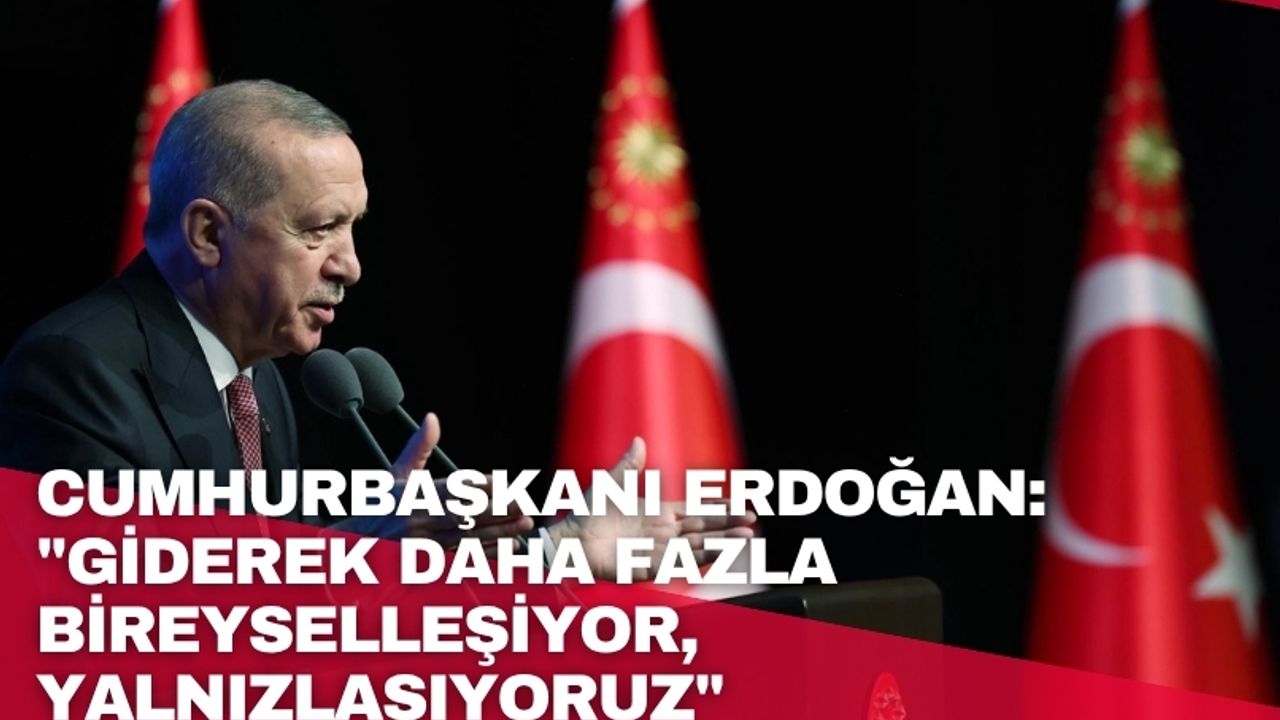 Veriler göre, gençlerin artık daha geç yaşlarda evlenmeyi tercih ettiğini gösterdiğini aktaran Cumhurbaşkanı Erdoğan, "2024’te evlenme yaşı kadınlar için 25,82’e, erkekler için 28,3’e yükseldi. Boşanmaların üçte biri evliliğin ilk 5 yılı içerisinde meydana geliyor. Toplum olarak giderek daha fazla bireyselleşiyor, bunun bir sonucu olarak da yalnızlaşıyoruz. 2008’de 4 kişi olan ortalama hane halkı büyüklüğü 2024 senesinde 3,11 kişiye geriledi. Aynı şekilde yalnız yaşayan fertlerden oluşan tek kişilik hane halkı oranı son 8 yılda 5 puan artarak yüzde 20’ye çıktı. TÜİK verilerine göre tek kişilik hane oranlarımız yıldan yıla artıyor. Bu tabloyla sadece metropollerde değil nüfusu nispeten daha az Anadolu illerimizde de karşılaşıyoruz. Kırdan kente göçün yanı sıra neoliberal kültür ile teknolojinin de etkisiyle hayatımızın her alanında köklü değişimler meydana geliyor. Aile mahremiyeti ve aile birlikteliği daha önce olmadığı kadar günümüzde zemin kaybediyor" dedi.