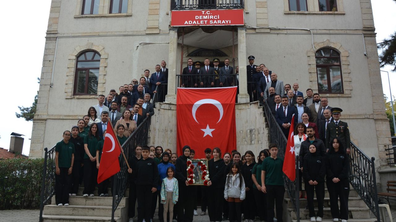 Kurtuluş Savaşı döneminde Milli Mücadele Kahramanı Demirci Kaymakamı İbrahim Ethem Akıncı tarafından karargah olarak kullanılan tarihi Hükümet Konağı, bu kez Cumhuriyet’in 102. yılı onuruna aynı kareyle tarih sahnesine çıktı. 29 Ekim 1928 yılında dönemin Kaymakamı Necmettin Bey, Belediye Başkanı Mehmet Hilmi Bey, Mahkeme Reisi Vacid Bey, ilçe protokolü ve öğrencilerle birlikte çekilen fotoğraf, 97 yıl sonra aynı noktada bugünün temsilcileriyle yeniden ölümsüzleştirildi.