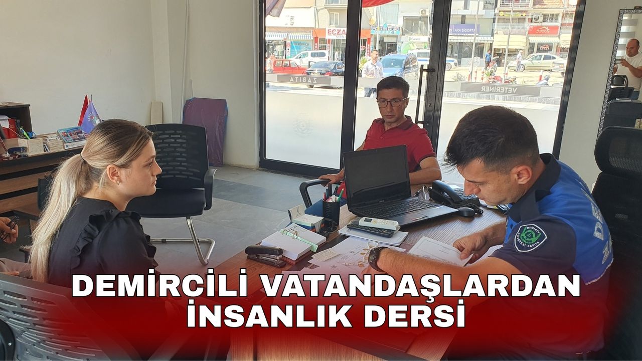 Demirci Devlet Hastanesi personeli Hüseyin Özdil de Üniversite Caddesinde bir altın künye buldu. Bulduğu künyenin kuyumcuda altın olduğunu öğrenen Hüseyin Özdil Zabıta Müdürlüğüne giderek teslim etti. Bulunan kolyenin sahibi yapılan kayıp müracaatı ile tespit edildi. Veteriner Kemal Faruk Şeker'in eşine ait olduğu tespit edilen künye zabıta ekiplerince tutanak ile teslim alındı.