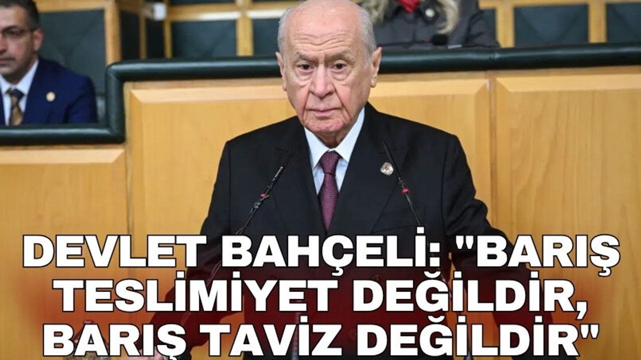 "Terörsüz Türkiye" süreci doğrultusunda TBMM’de yapılan komisyon çalışması sonucunda ortaya çıkan rapor ve rapordaki yasal düzenlemeler hakkında konuşan Bahçeli, "Bugün gelinen noktada yasal düzenlemelerin Türkiye Büyük Millet Meclisi’ne yasa çalışması olarak taşınacak olgunluğa erişmesi memnuniyet vericidir. Dünyanın ve bölgemizin ciddi kırılmalarla, risklerle ve jeopolitik sarsıntılarla karşı karşıya bulunduğu bir dönemde kendi iç bünyemizin tahkimi, milli birliğimizin güçlendirilmesi ve toplumsal dayanışmanın sağlamlaştırılması, ertelenemez bir zaruret halini almıştır. Türkiye Büyük Millet Meclisi’nin bu süreçte aldığı inisiyatif, millet adına son derece dikkatli, son derece titiz ve sorumluluk bilinci yüksek bir şekilde yürütülmektedir. Bu tabloyu yakından takip ediyor, yapılan çalışmaları yakından izliyor ve gereken her hassasiyetin gösterilmesini elzem görüyoruz. Bu meselede hiçbir boşluk, hiçbir ihmal ve hiçbir zafiyetin kabulü mümkün değildir. Biz diyoruz ki barış teslimiyet değildir. Barış taviz değildir. Barış milletin onurunu koruyarak, devletin gücünü muhafaza ederek sağlanan bir dengedir. Barış adaletin, kardeşliğin ve milli varlığın birlikte yükseldiği bir ülküdür" dedi.