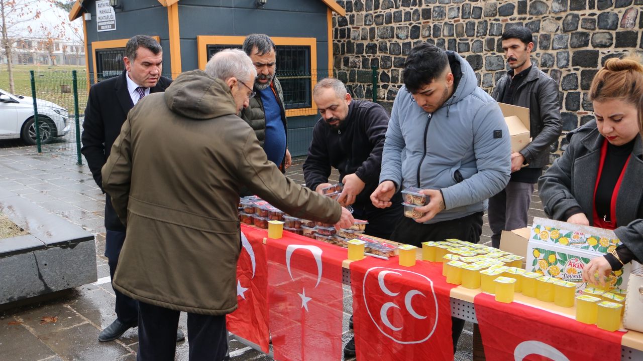 MHP Sur İlçe Başkanı Şakir Erdin ile MHP Sur Kadın, Aile, Çocuk ve Engelli Politikaları İlçe Başkanı Serap Kaya, beraberlerindeki teşkilat üyeleriyle birlikte Berat Kandili dolayısıyla Diyarbakır’ın Sur ilçesinde anlamlı bir etkinliğe imza attı. Bir dönem terör olaylarıyla anılan Sur ilçesindeki tarihi Kurşunlu Cami önünde gerçekleştirilen programda, vatandaşlara kandil simidi, tatlı ve meyve suyu ikram edildi. Vatandaşların yoğun ilgi gösterdiği etkinlikte birlik, beraberlik ve barış vurgusu ön plana çıktı.