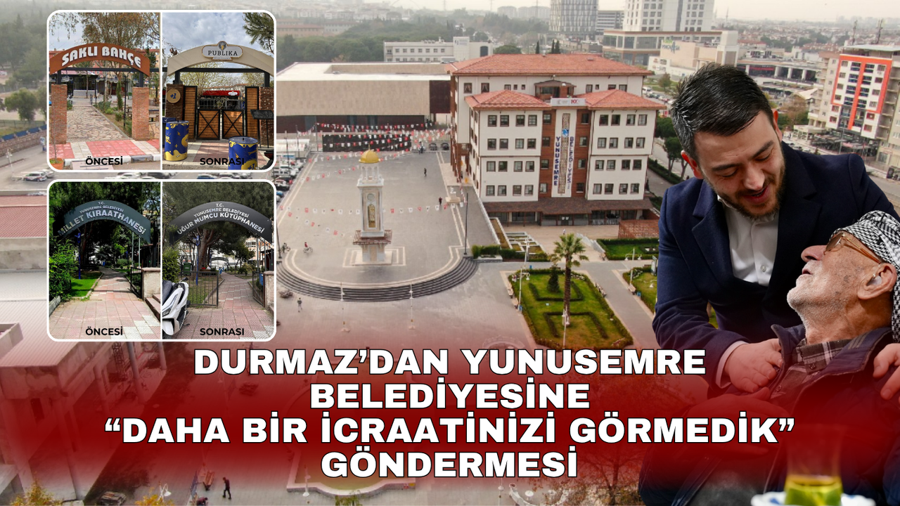 Durmaz, Yunuspark Kafe’nin Gençlik Kafe olarak yeniden açılmasına da değinerek şu ifadeleri kullandı: “Yunuspark Kafe vardı, şimdi Gençlik Kafe oldu. Burası masa, sandalyesinden çayına, şekerine kadar AK Parti döneminde hazırlanmış ve devredilmiş bir yerdi. Sonrasında sadece tabelası değiştirilerek yeniden açılışı yapıldı. Bu durumun da kamuoyuna farklı şekilde sunulduğunu görüyoruz.”