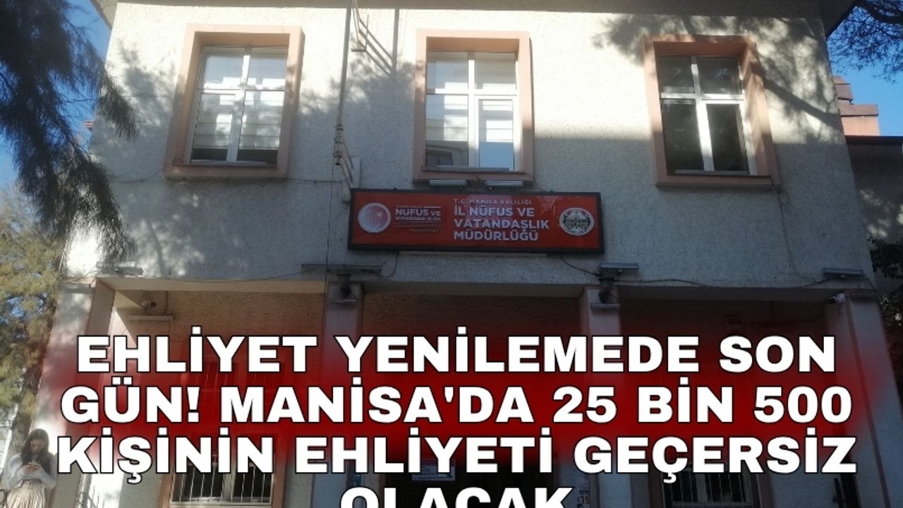 Eski tip sürücü belgesi kullanan Manisa'daki 25 bin 500 kişinin ehliyeti 31 Ekim 2025 tarihinden itibaren geçersiz hale gelecek. Yenileme işlemini bu tarihe kadar yapmayan sürücüler, 1 Kasım'dan itibaren 7 bin 438 lira ücret ödemek zorunda kalacak.