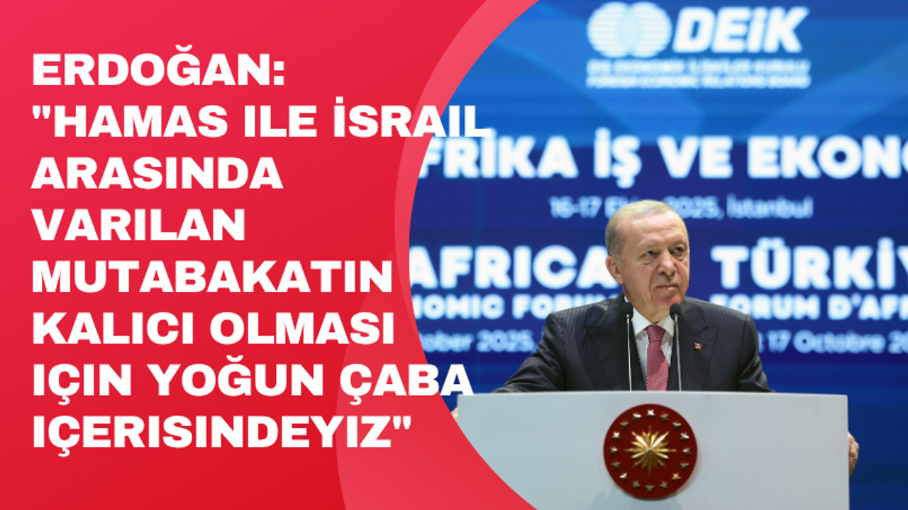 Çatışma ve krizlerin yüklerini genellikle çocuklar ve kadınların çektiğini vurgulayan Cumhurbaşkanı Erdoğan, "Bunu sadece Sudan ve diğer çatışma bölgelerinde değil, işte en son hem de çok dramatik bir şekilde Gazze'de gördük. İsrail'in 2 yıl boyunca sürdürdüğü saldırlarda 68 bin Filistinli şehit oldu, 170 bini aşkın kardeşimiz yaralandı. Bazıları açlıktan olmak üzere 20 binden fazla çocuk öldü. Gazeteciler sırf hakikati duyurdukları için katledildi. Enkazların altında ne kadar masumun naaşının olduğunu kimse bilmiyor. Tüm insanlığın gözü önünde 2 yıl boyunca bir soykırım yaşandı. Ve sözde medeni dünya buna engel olamadı. Doğru düzgün tepki göstermedi. Daha vahimi soykırım sürerken bize, Afrikalı kardeşlerimize demokrasi dersi veren Batılı devletler, İsrail'e silah yardımı yapmaya devam etti. Şunu burada büyük bir memnuniyetle ifade etmek istiyorum. Gazze soykırımında tıpkı Türkiye ve Türk milleti gibi Afrikalı kardeşlerimiz de gerçekten vicdanlı bir duruş sergilemişlerdir. Güney Afrika Cumhuriyeti tarafından Uluslararası Adalet Divanı'nda İsrail aleyhine açılan soykırım davası bu süreçte tarihe not düşen cesur bir tavır olmuştur. Mazlumları yanlız bırakmayan Afrika halklarına bir kez daha yürekten teşekkür ediyorum. Biliyorsunuz bizim de gayretlerimizle Gazze'de ateşkes sağlandı. Pazartesi günü Şarm el-Şeyh'te 4 ülkenin liderleri olarak çok önemli bir deklarasyona imza attık. Hamas ile İsrail arasındaki mutabakatın kalıcı olması, kalıca barışa zemin oluşturması için yoğun çaba içindeyiz. Ancak İsrail'in kötü sicidili dolayısıyla tedbiri ve temkini elden bırakmıyoruz. Gazze'nin süratle yaralarını sarmaya ve yeniden ayağa kalkmaya ihtiyacı var. Biz bunun için ne gerekiyorsa yapmaya devam edeceğiz. Sizlerden de Filistin halkıyla dayanışmanızı güçlendirirek sürdürmenizi özellikle istirham ediyorum" dedi.