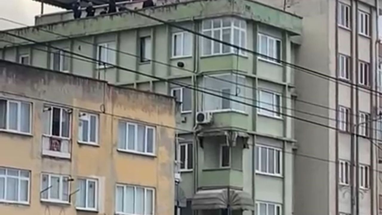 Saatlerdir çatıda bekleyen şahıs polis ekiplerinin ikna çabasıyla çatıdan indirilirken, şahsın eşiyle barışmak için çatıya çıktığı öğrenildi.