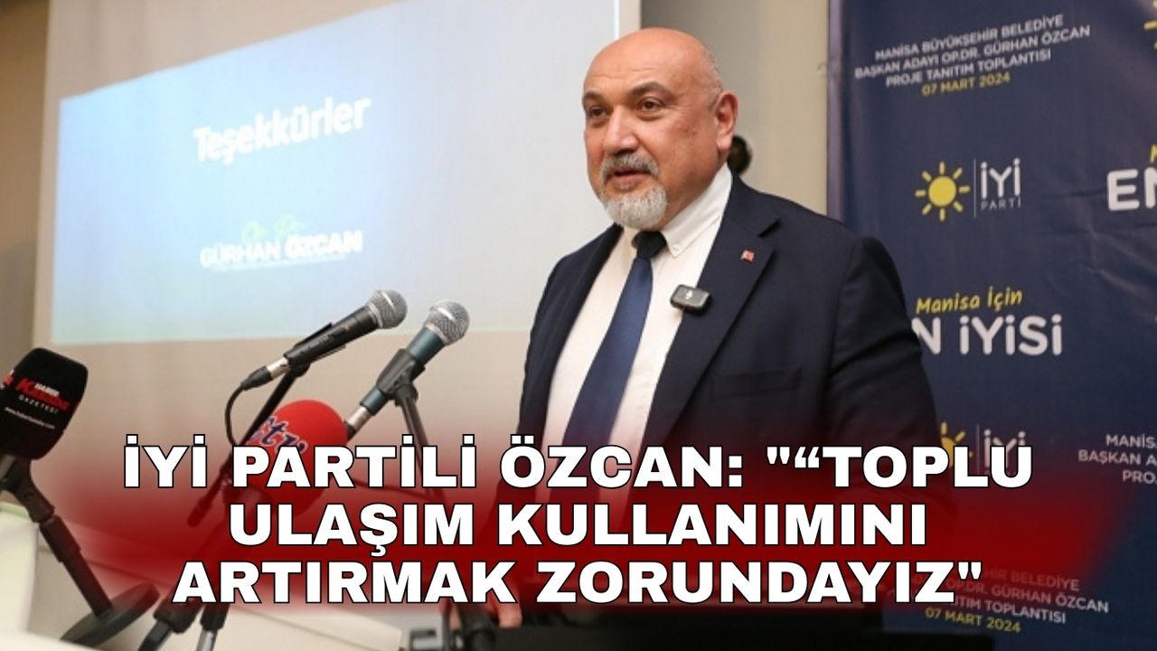 Manisa’da trafiğin azaltılmasının sağlanması için en önemli konunun toplu ulaşımı teşvik olduğuna dikkat çeken İYİ Partili Gürhan Özcan “Toplu ulaşım kullanımını artırmak zorundayız. Bunun için de öğrenci, öğretmenlere aylık abonmanlık sistemi hayata geçirilmelidir. Bu şekilde özel araçlar ve servisler trafikte daha az yer alır.” dedi.