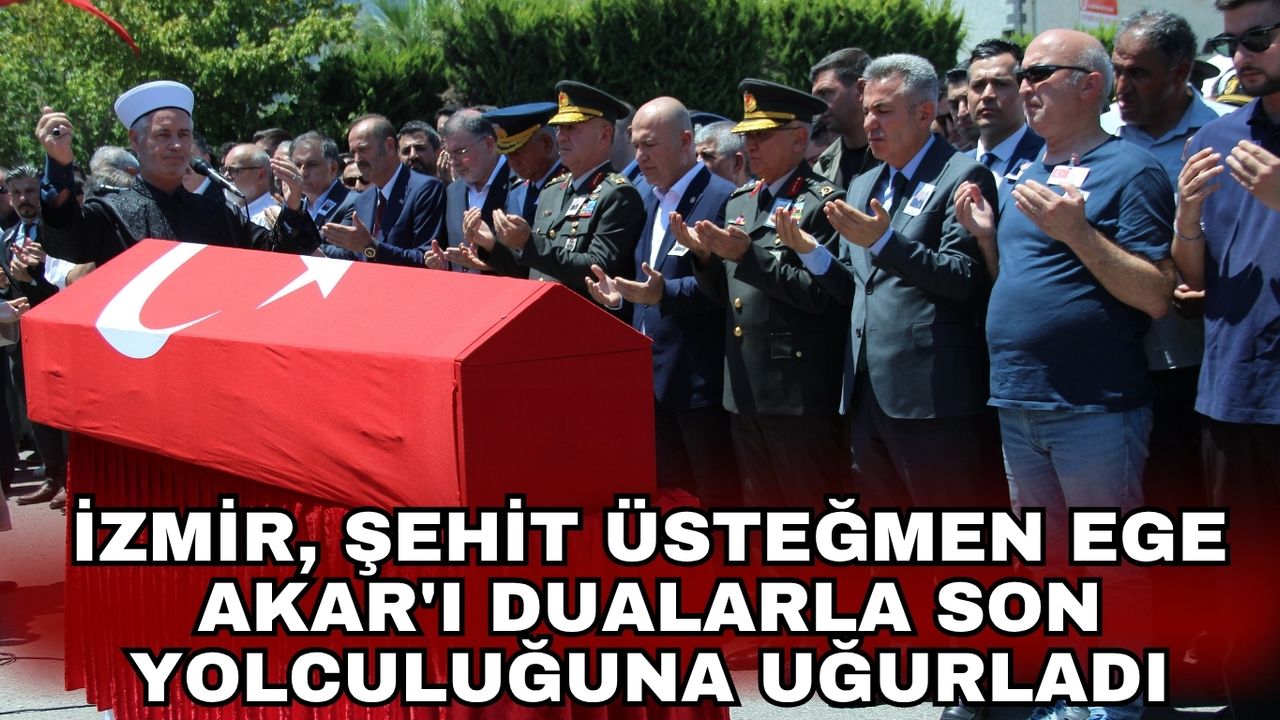 Şehit Üsteğmen Ege Akar'ın naaşı, dün hava yoluyla Adnan Menderes Havalimanına getirildi. Bugün öğle vakti, Gaziemir 15 Temmuz Şehitler Camii'nde düzenlenen cenaze törenine ailesi, yakınları, askeri yetkililer ve çok sayıda vatandaş katıldı. Törene, şehidin emekli astsubay babası Özcan Akar, emekli askeri personel annesi Jüliye Akar, kız kardeşi Bilge Akar, dedesi Mehmet Akar ve anneannesi Necmiye Akar ile birlikte İzmir Valisi Süleyman Elban, Ege Ordusu ve Garnizon Komutanı Orgeneral İrfan Özsert, Aile ve Sosyal Hizmetler Bakan Yardımcısı Leman Yenigün, şehidin meslektaşları, askeri ve sivil erkan ile siyasiler katıldı. Tören sırasında aile gözyaşlarına hakim olamadı.