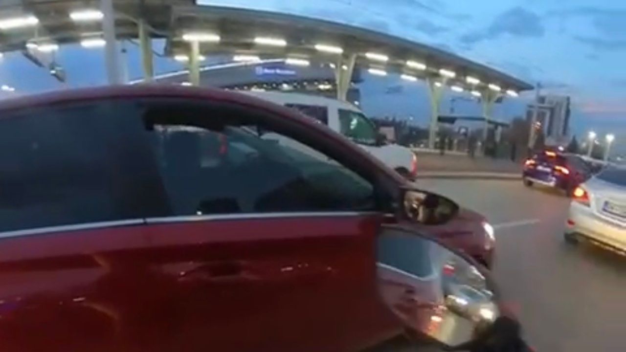 Olay anı ise motosiklet sürücüsünün kask kamerasına saniye saniye yansıdı.