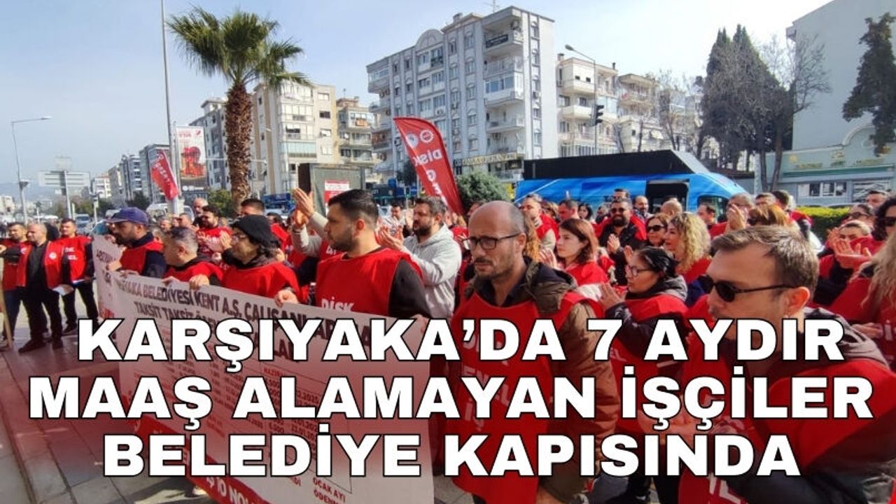 Karşıyaka Belediyesi bünyesindeki Kent A.Ş.’de görev yapan işçiler, ödenmeyen ücretleri ve çalışma şartlarındaki belirsizlikler nedeniyle protestolarını sürdürüyor. DİSK Genel-İş 10 Nolu Şube öncülüğünde belediyenin ana hizmet binası önünde toplanan işçiler, Belediye Başkanı Yıldız Ünsal ile yapılması planlanan görüşmenin iptal edilmesine tepki göstererek basın açıklaması yaptı.