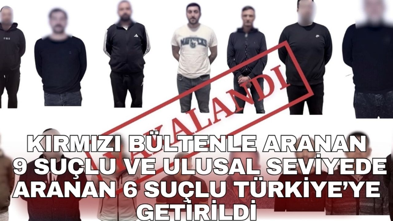 Bakan Yerlikaya, sosyal medya hesabından yaptığı paylaşımda, kırmızı bültenle aranan 9 suçluyu ve ulusal seviyede aranan yurt dışındaki 6 suçluyu, Türkiye’ye getirildiğini duyurdu.
