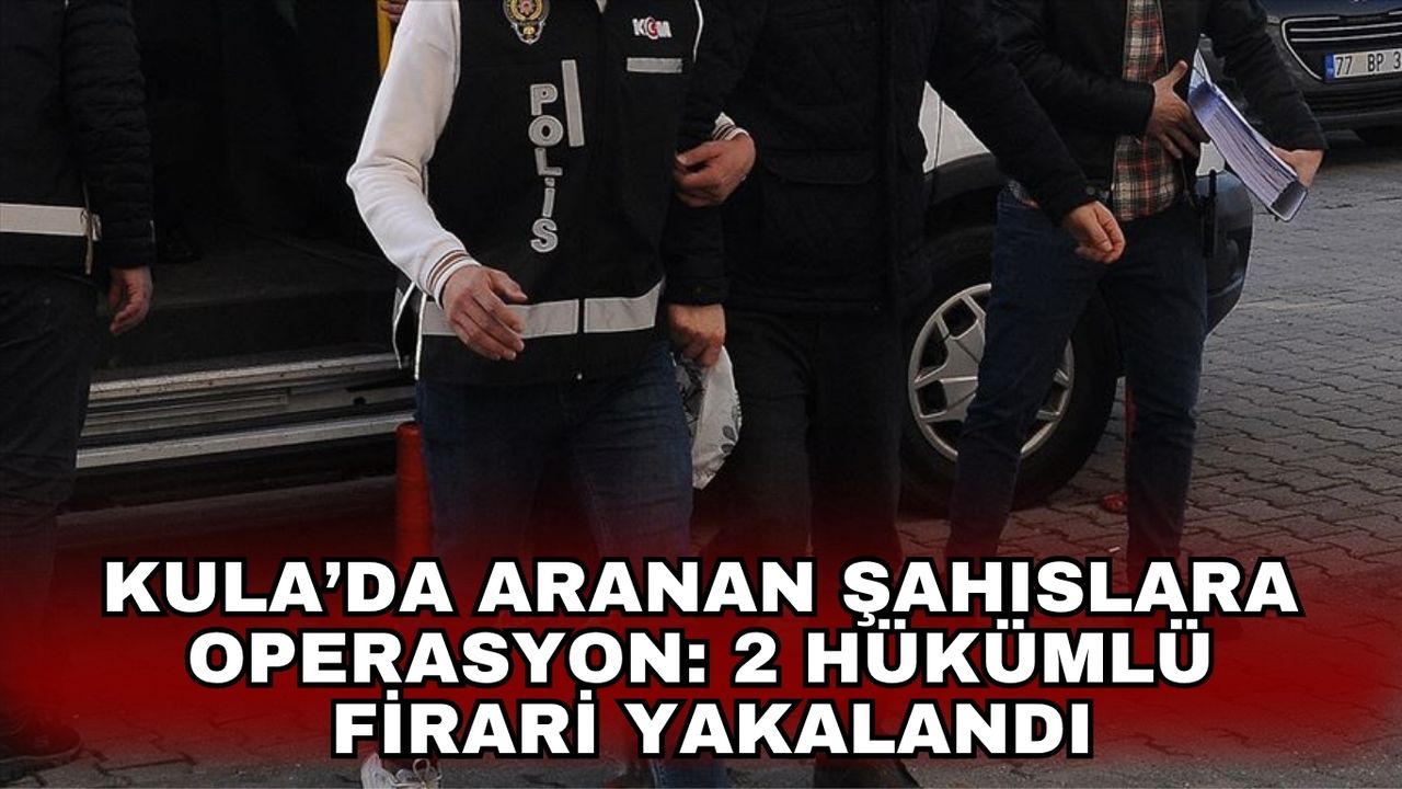Edinilen bilgilere göre, Kula İlçe Emniyet Müdürlüğü ekipleri tarafından, hakkında "Hırsızlık" suçundan 20 yıl 10 ay kesinleşmiş hapis cezası bulunan M.B. ile "Kasten Yaralama" suçundan 4 yıl 2 ay 18 gün hapis cezası bulunan Ş.Ö.’nün ilçede oldukları belirlendi. Şahısların izini süren emniyet güçleri, farklı adreslerde saklanmaya çalışan zanlıları yürütülen eş zamanlı operasyonla yakaladı. Emniyetteki işlemleri tamamlanan hükümlüler, çıkarıldıkları adli mercilerce tutuklanarak cezaevine teslim edildi.