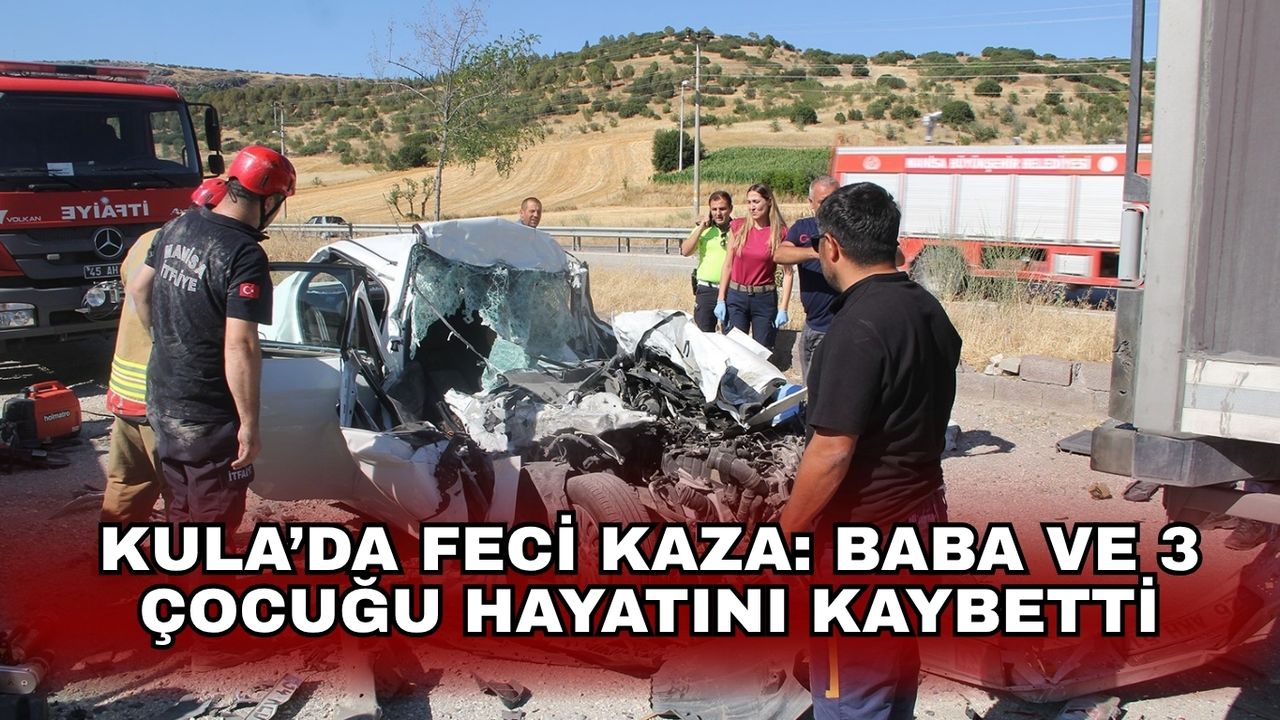 Çarpmanın etkisiyle otomobil hurdaya dönerken, araçta bulunan sürücü Rıdvan A. ile çocukları M.N.A. (12), Y.A. (9) ve M.T.A. (6) araç içerisinde sıkıştı. İhbar üzerine olay yerine çok sayıda sağlık, jandarma ve Manisa Büyükşehir Belediyesi İtfaiye Dairesi Başkanlığı’na bağlı kurtarma ekipleri sevk edildi. Ekipler, araçta sıkışan baba ve 3 çocuğunu uzun uğraşlar sonucu çıkardı. Sağlık ekipleri tarafından yapılan kontrollerde 4 kişinin de hayatını kaybettiği belirlendi.