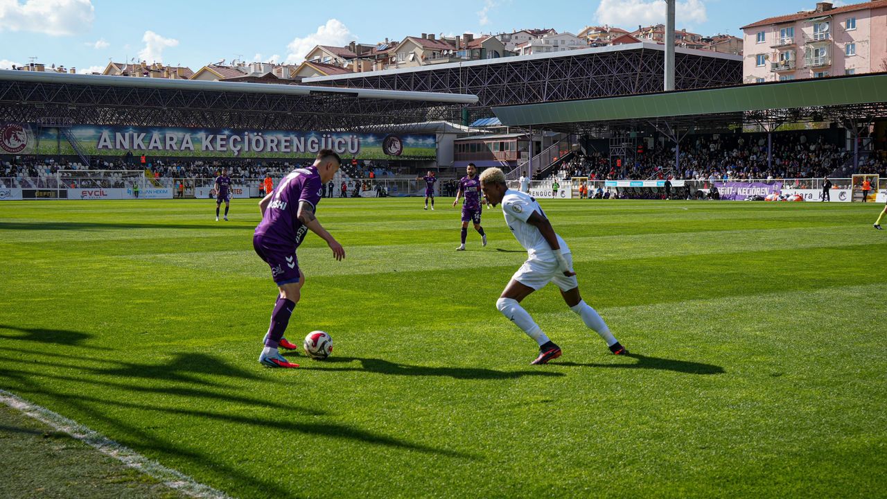 24. dakikada Keçiörengücü’nün kazandığı penaltı atışında topun başına geçen Fernandes’in sağ köşeye yaptığı vuruşu kaleci Vedat kurtararak gole izin vermedi.