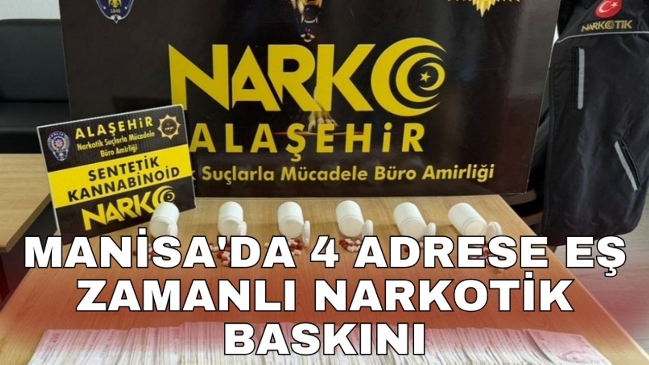 Alaşehir ilçesinde uyuşturucu madde ticareti yapan şahıslara yönelik çalışmalarını sürdüren Manisa İl Emniyet Müdürlüğü Narkotik Suçlarla Mücadele Şube Müdürlüğü, Sarıgöl ilçesini de kapsayan operasyon gerçekleştirdi. Alaşehir Büro Amirliği ekipleri tarafından belirlenen 4 adrese eş zamanlı baskın düzenlendi. Adreslerde yapılan aramalarda 90 adet sentetik ecza ile uyuşturucu madde ticaretinden elde edildiği değerlendirilen 50 bin TL ele geçirildi. Uyuşturucu madde ticareti yaptığı değerlendirilen M.A. (26) gözaltına alındı. Emniyetteki işlemlerinin ardından adliyeye sevk edilen şüpheli, çıkarıldığı mahkemece tutuklanarak cezaevine gönderildi.