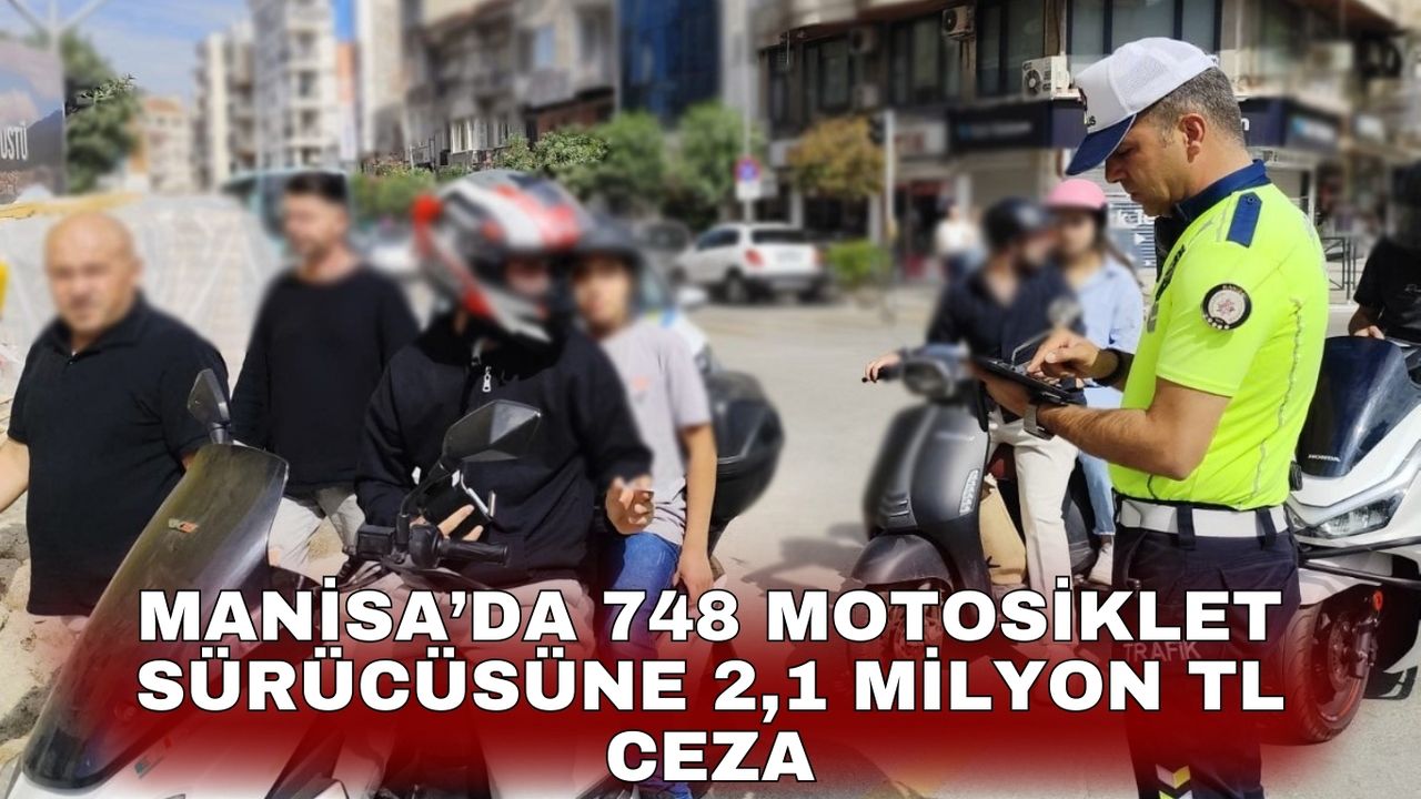 Manisa İl Emniyet Müdürlüğü Trafik Denetleme Şube Müdürlüğü ve ilçe trafik birimleri, 26-27 Eylül tarihlerinde 33 ekip 61 personel ile motosiklet ve motorlu bisiklet denetimi gerçekleştirdi. Yapılan denetimlerde 1.707 araç ve sürücü kontrol edilirken, kusurlu görülen 748 araç ve sürücüye toplam 2 milyon 158 bin 342 TL idari para cezası uygulandığı öğrenildi. Denetimler sonucu 48 aracın da trafikten men edildiği bildirildi.