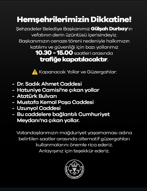 Manisa'da trafiğe kapalı olacak yollar şu şekilde: