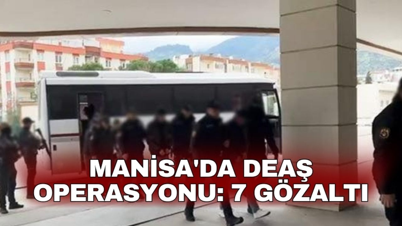 Manisa Emniyeti'nin Terörle Mücadele ekipleri, DEAŞ'e yönelik yürüttükleri çalışmada Manisa merkezli olmak üzere İzmir, Bursa, Kahramanmaraş, Van ve Hatay'daki adreslere özel harekat destekli eş zamanlı operasyon gerçekleştirdi. Baskınlarda Abdülkadir S., Yunus Ç., Tacettin Ç., Emrah E., Nuh B., Natıq Ahmed S. ve Mustafa D. gözaltına alındı. Yapılan aramalarda 1 av tüfeği, 2 kama ile bazı yasaklı yayınlar ve dijital kayıtlar ele geçirildi. Şüpheliler, işlemlerinin tamamlanması için Manisa'ya sevk edildi.