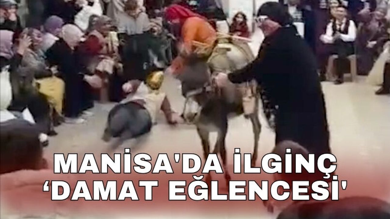 Manisa'nın Gördes ilçesine bağlı Beğenler Mahallesi'nde Birkan ve Tuğba Çoban çiftinin kına gecesinde damadın arkadaşları ilginç bir sürpriz yapmak istedi. Damadın arkadaşı Halil Çetin, eşeğe binerek kına gecesinin gerçekleştirildiği kapalı salona girdi. Misafirlerin arasında eşekle gezen Halil Çetin, şov yapmak istediği sırada misafirlerin üzerine doğru düştü. Renkli görüntülere sahne olan ‘damat eğlencesinde' misafirler kahkahaya boğulurken eşekten düşen Halil Çetin olayı yara almadan atlattı.