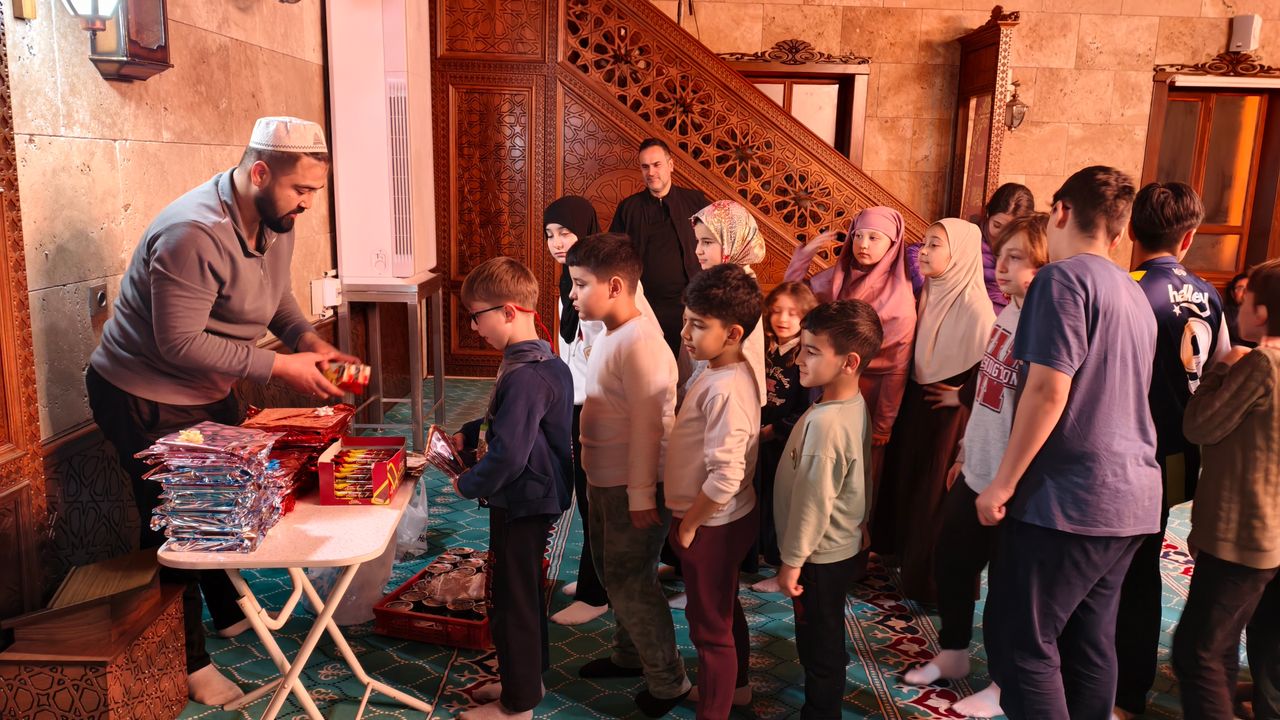 Çocukların camiye alışması ve ibadet bilincinin küçük yaşta kazanılması amacıyla gerçekleştirilen programda miniklere çeşitli hediyeler takdim edildi. Hediyelerini alan çocukların mutluluğu yüzlerine yansırken, camide renkli ve samimi görüntüler oluştu.