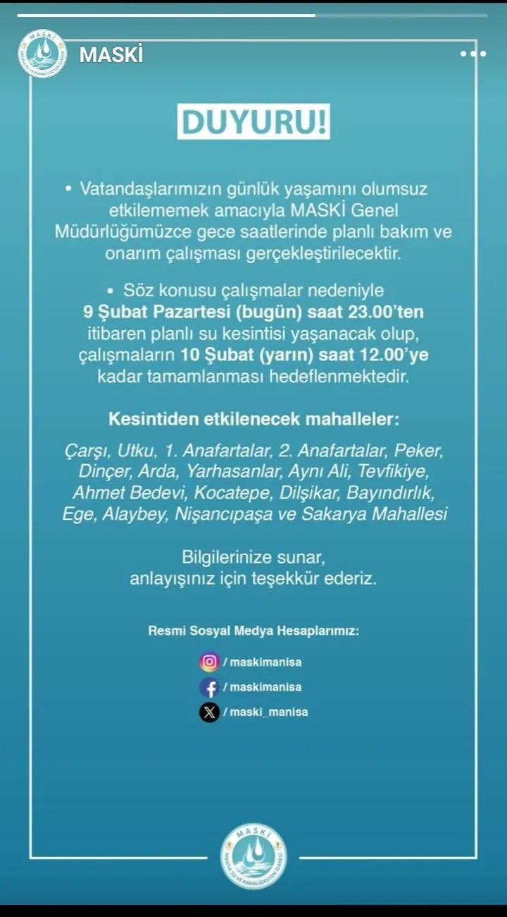 MASKİ yetkilileri, çalışmaların hedeflenen sürede tamamlanması için ekiplerin sahada olacağını belirterek vatandaşlara anlayışları için teşekkür etti.